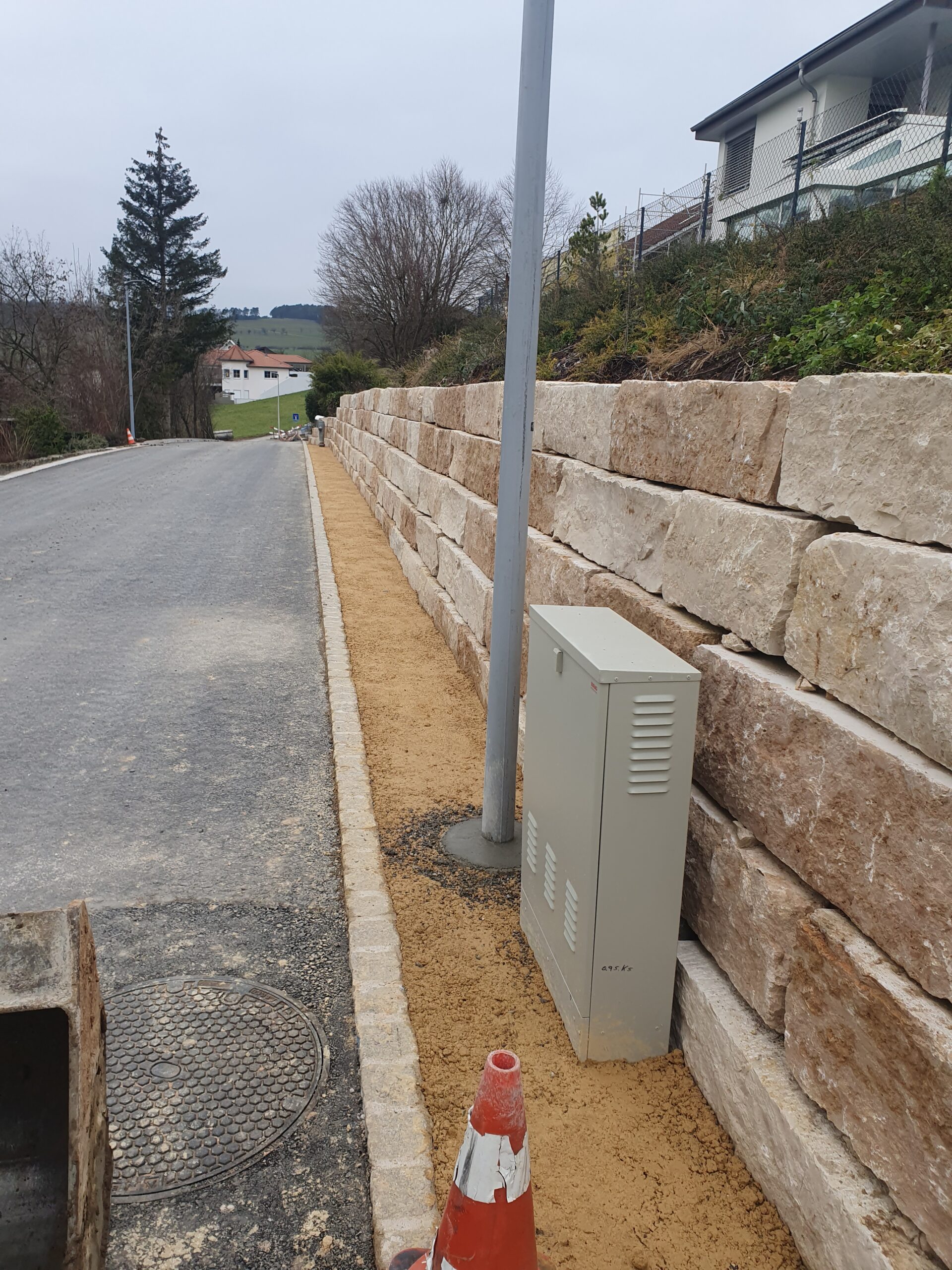 | Charakteristik | - Strassenbau - Sauberwasserleitung DN 300 - Wasserleitung DN 125 - Elektroversorgung - Stützbauwerke (Blocksteinmauern) - Beitragsplan Strassenbau (Kostenverteilung zwischen Grundeigentümern / Gemeinde) |